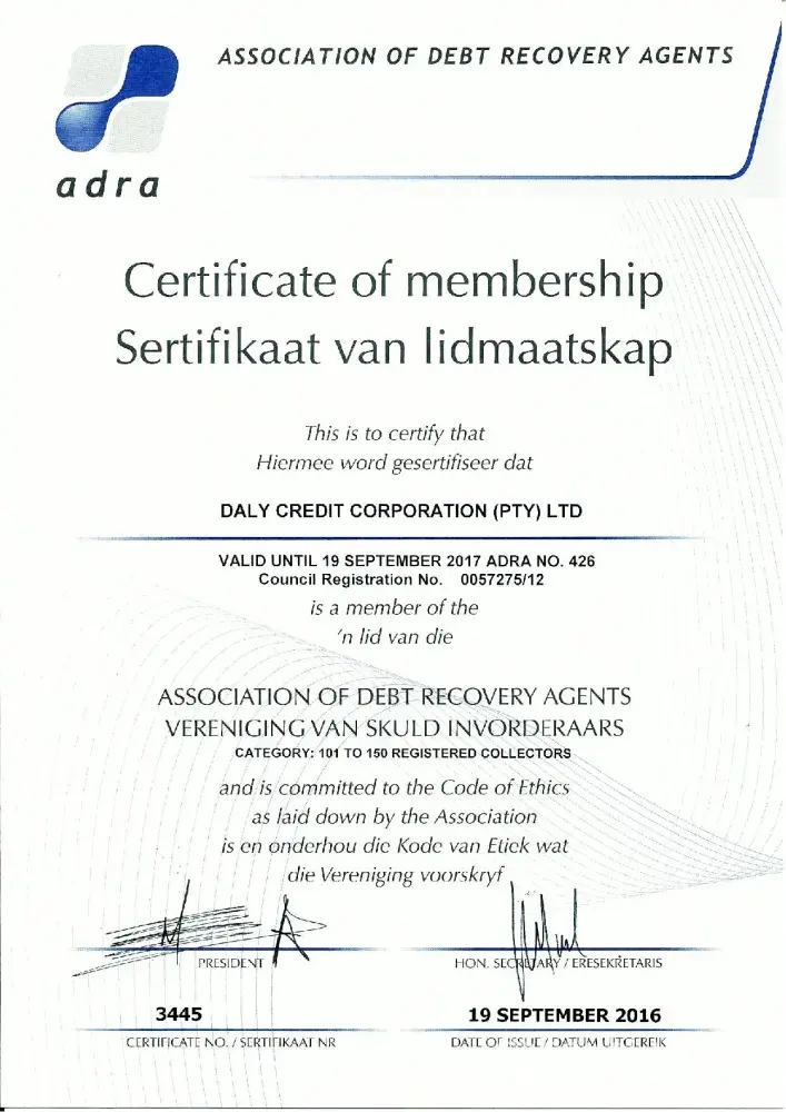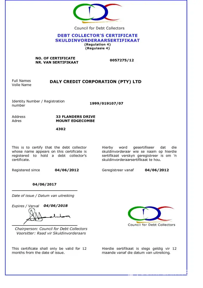 ANSWER: All debt collectors must register with the Council for Debt Collectors in order to operate. Failure to register before collecting a debt is a criminal offence.