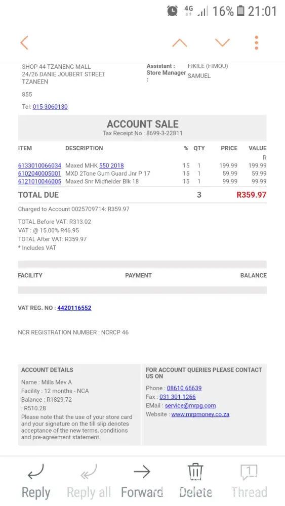 Fortunately, I am a Quality Manager and I will not allow MRP Mobile to still money out of black people like this, because they called me about phone and I refuse to take this phone as if I knew there will be a problem now I have to pay for not liking the phone. I will put this incident on social media to ensure all people of South Africa are aware of this kind of money making scheme. I am calling consumer protection about this incident.