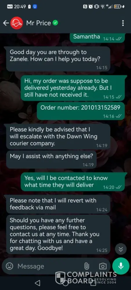 I bought a pair of shoes on Friday the 5th of April 2024, i got an email stating that I will get the parcel before or on the 12th of April. However, that was not the case I have not received any communication regarding the parcel. Today is the 12th of April and the delivery did not arrive.