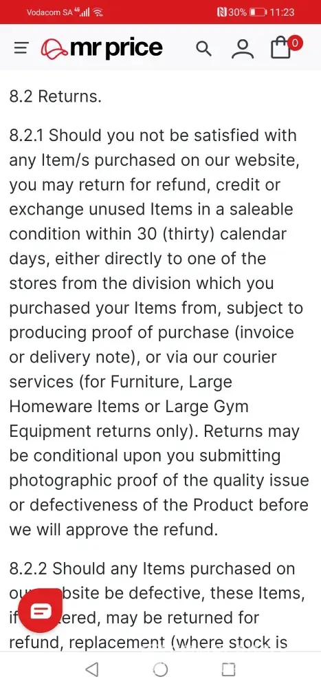 Mr Price Group / MRP Returning clothes for an exchange