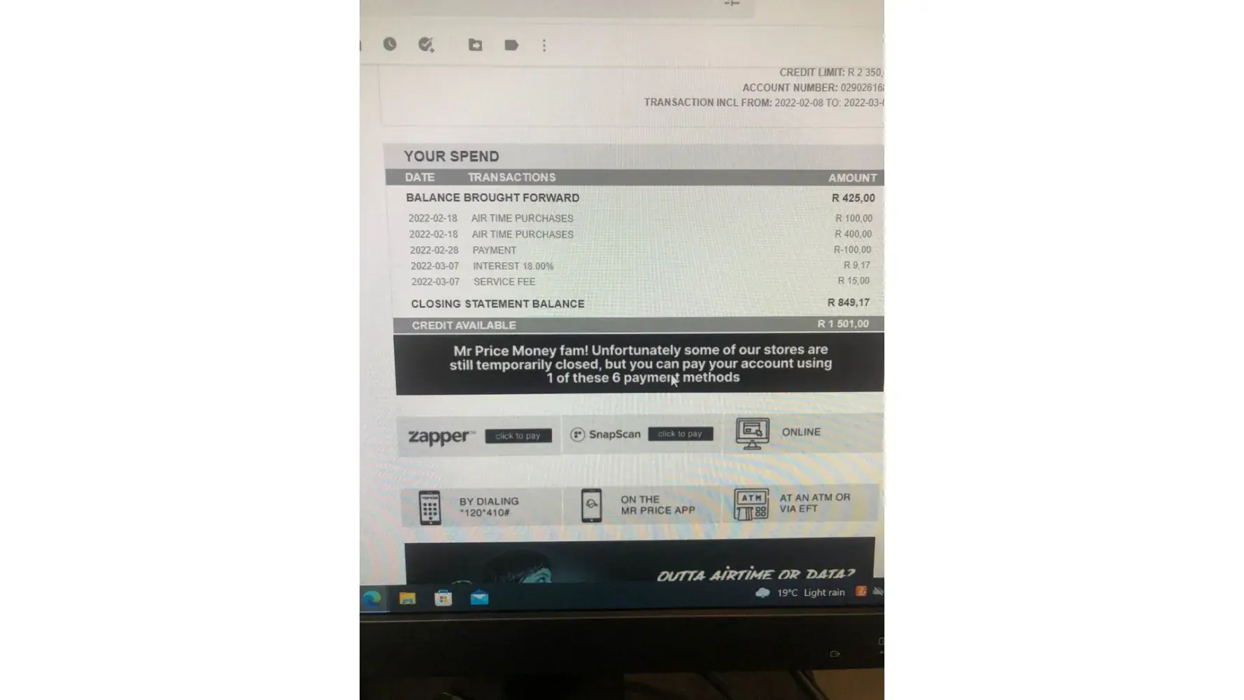 Mr Price Group / MRP Wrong airtime purchase transactions on statement
