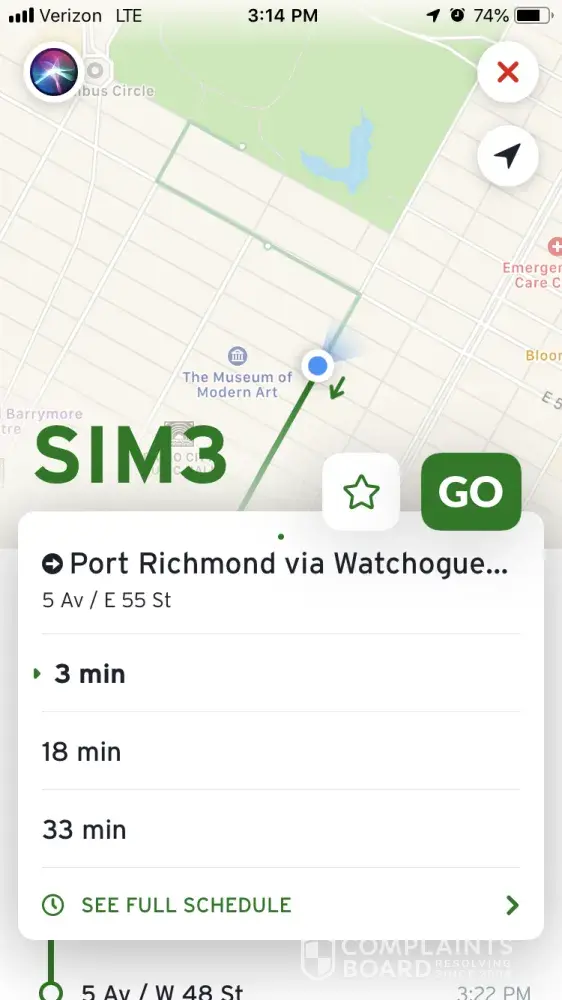 stop in time to catch my bus (SIM3). Well boy was I in for a rude awakening when it didn't come for the next 50 mins. In the interim, 5 SIM8s passed by (I guess it was a slow day considering the 8s pass by every 5 mins an hour). Everyone waiting at my stop for the SIM8 was serviced for each stop, yet I stayed standing at the stop, braving the rain, wind, and cold, while I waited for my bus. I checked my app to start. It said it was 8 mins away at 3:09 and the next was 23 mins away. That's a large time gap if you ask me, but I didn't mind knowing I'd be on the bus at 3:17. This was very accurate to the time that was listed on the stop's timetable itself that said the bus should arrive at 3:18. So I waited knowing my bus should be arriving shortly. At 3:14, I check again. The bus said it was 3 mins away which was right on track with the initial time that was stated. However, at 3:15 I begin to get skeptical of the bus coming so I checked another app to see that there was not A SINGLE BUS COMING ON THE MAP. Already distressed due to the disappointment and lack of punctuality the MTA constantly displays, I waited for the second bus (that the app said was on its way) to arrive. At 3:22 my app said it was only 10 mins away. This also would have been correct with the times displayed at each stop since my stop showed the second SIM3 should be by me at 3:33. Now entirely wet from the rain and shivering from the cold wind, I check my other app at 3:26 to see where the bus is on the map. And YET AGAIN, there was NOT ONE SINGLE BUS ON THE MAP. I go back to my transit app to see if any of the times updated and soon realized that in fact, none of them were updated AT ALL. It said that the SIM3 was still 7 mins away. Now at this point, I am filled with rage. Not only did I leave work early to catch an early bus home, but I was depending on that bus to be there. I had a very early flight that I had to make and when you are depending on transportation to get you one place to another, you'd expect the service to be accurate and accountable. Well, the MTA, specifically with its SI routes and services, has displayed absolutely nothing but poor timing, lack of care for its customers, and untruthful timetables. So as I CONTINUE TO WAIT FOR 38 MINUTES FOR A SIM3 TO ARRIVE, I check my app to see that not 1, but 2 buses BACK TO BACK will arrive at the stop in 3 mins. Well 3 mins later can you guess what happened?! My bus DIDN'T SHOW UP! What a surprise! WOW! At 3:44, two buses were shown to be 0 mins away and do you think that they were? OF COURSE NOT. At 3:48 my bus FINALLY arrived and not only did I have to flag him down as he drove past us, but I had to run into the middle of the street in order to get on the bus. So all in all, I'd say my experience taking the bus today has been just nothing short of predictable and everything from disappointing to unacceptable. At this point I'd like to ask you, what does it take in order to be serviced by the SI Express Bus? Must one live on the South Shore in order to feel like a valued customer? It's evident that everyone from the South Shore is being serviced and their routes are being changed and people are having buses come often, but what does that leave for the rest of the ENTIRE ISLAND? Are we not valued enough? Do we not live far enough? Is our commute back and forth every day for 2 hours day and night making it 10 hours a week commuting not hard enough already? Are you trying to make it harder? I'm so curious to see what the MTA thinks. Because it's clear, especially now, that they most certainly don't think at all. Are buses being cut for no reason? Are drivers taking longer breaks because they do not want to pick up passengers? I refuse to accept the excuse that the buses are late because of inclement weather because truth be told, in rain or shine, the SIM8s arrive all the time. And so does every other bus BUT THE SIM3. Changes must be made. Management must be changed. Customers will no longer ride if they have to wait for 1 hour!