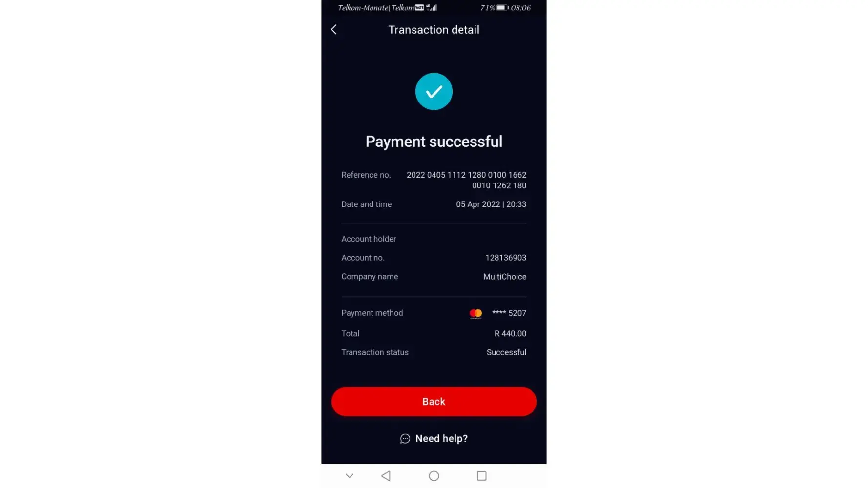 I was happy to see dstv using vodacom vodapay app as their payment merchant and I made my payment through the app only to regret the choice later. It's two weeks since I made the payment going into my third week that I'm disconnected on my services all because my payment can't be allocated cos they want a PDF format proof of payment of which I send but the dismiss as invalid all because it's not a bank statement but a transaction receipt of payment from my virtual card payment.