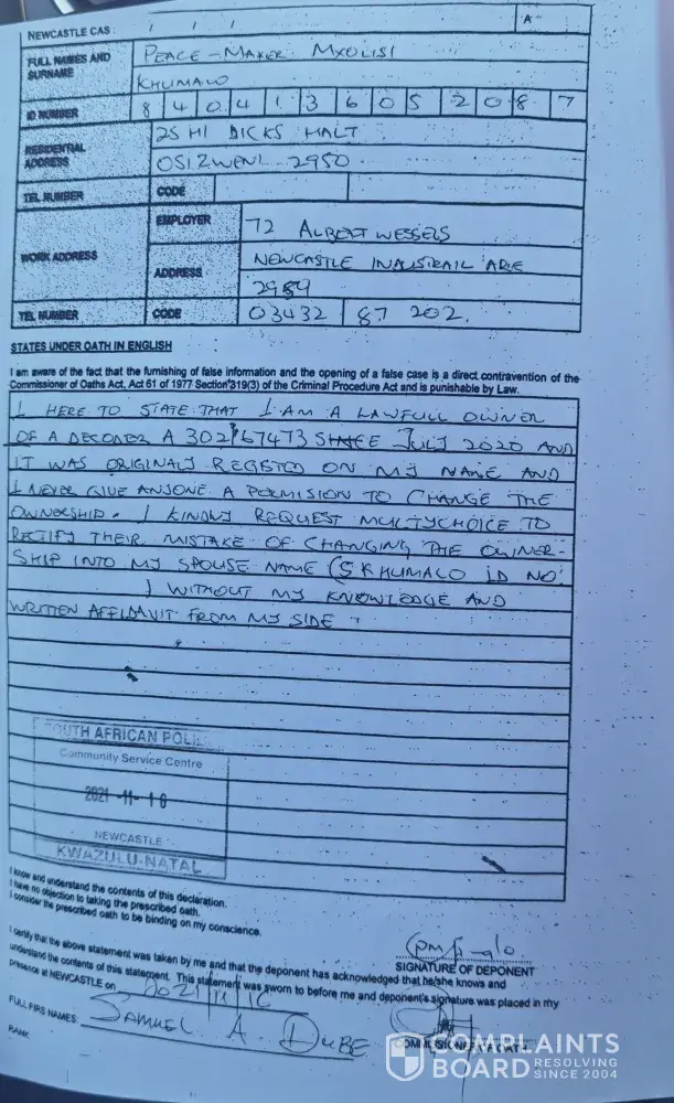 I here want to complain about the unfair treatment that I received from the manager of Multichoice in Newcastle KZN, I went there to change back the ownership of my decoder A302167473 because it was changed to someone's name without my permission. His attitude toward me it was completely bad and no his position I don't think he has to treat me in such a way.