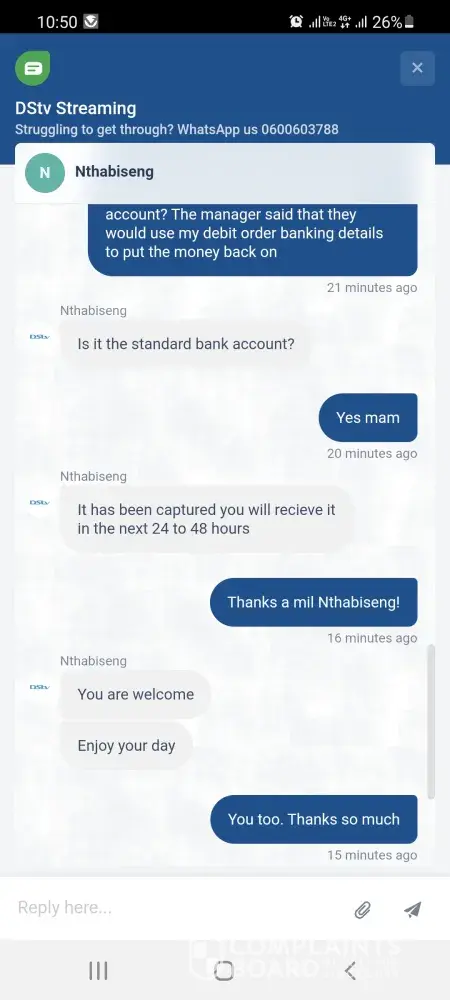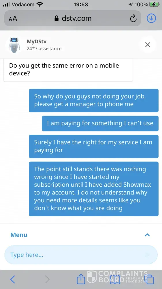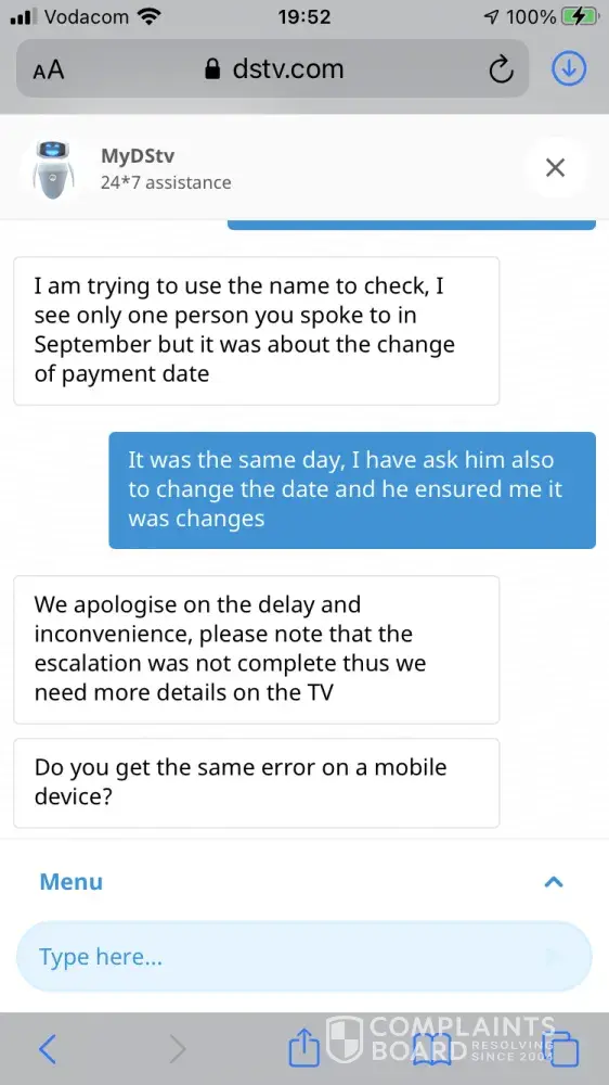 Good day, I would like to lodge a formal complaint for dstv SA. I have an issue of billing since the 4th of August and it still has not been resolved to til today. I have sent numerous emails and called over 10 times but still have no answer. I have requested to speak to a manager and the consultants always say there is no manager. I have tried social media pages and still no assistance. My cell phone number is [protected].