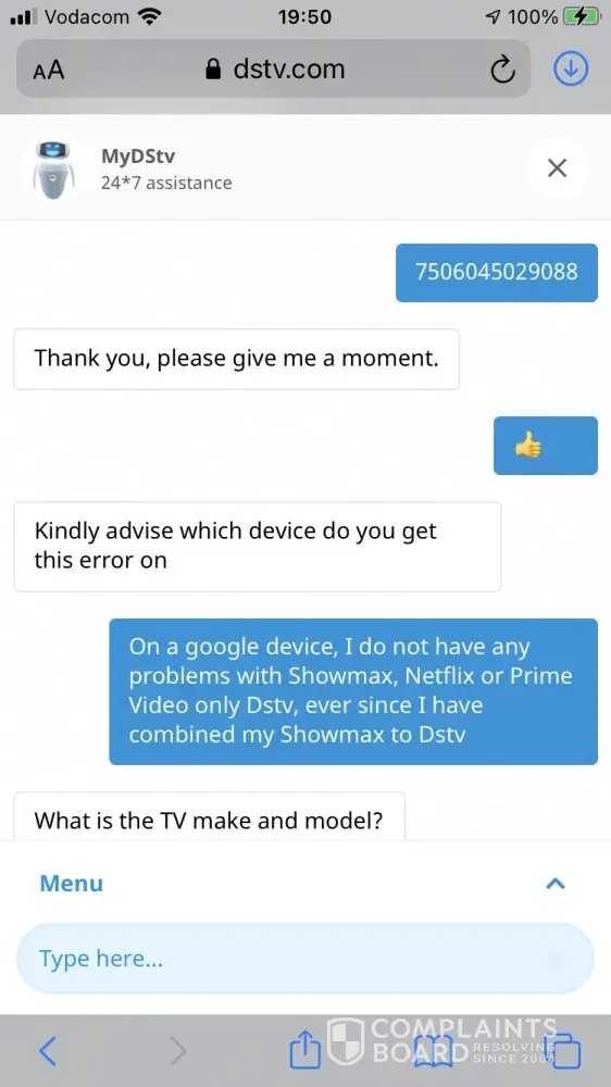 Hi my name is lerato. I have been contacting you through all channels to report the e48 error since january 2021. I have paid technicians and still the problem has not stopped. Now, my tv plays for a minutes, then the error shows on the screen, tv goes blank and back on. I called and your employee could not help, instead tells me to pay someone again. Now, this really unprofessional and very annoying. It costs money to call, whatsapp and send emails. I need this to be fixed as soon as possible. Icasa has to explain how do they approve and company that can not solve its own problems mxm.