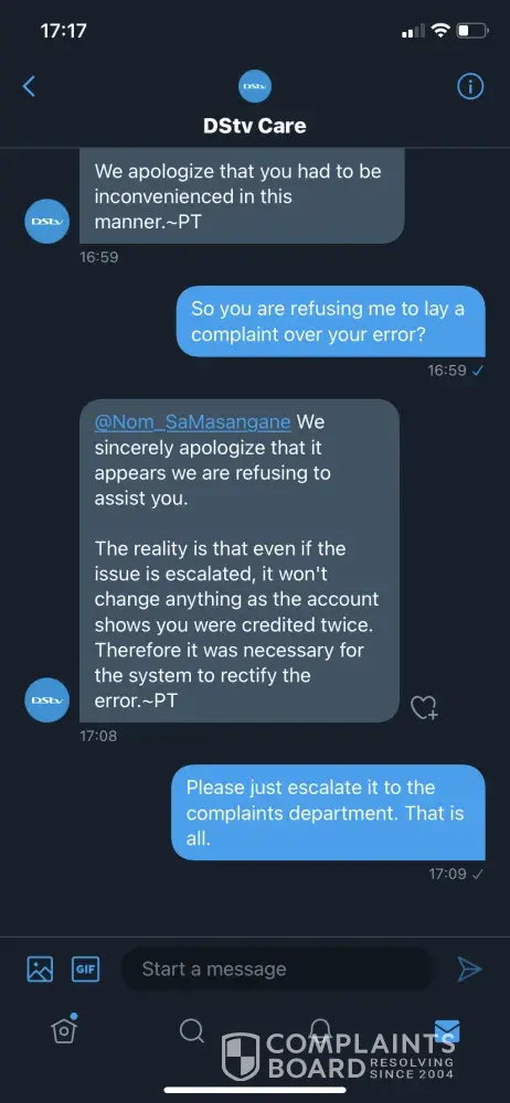 Their social media Manager is blatantly refusing me to lay a complaint.