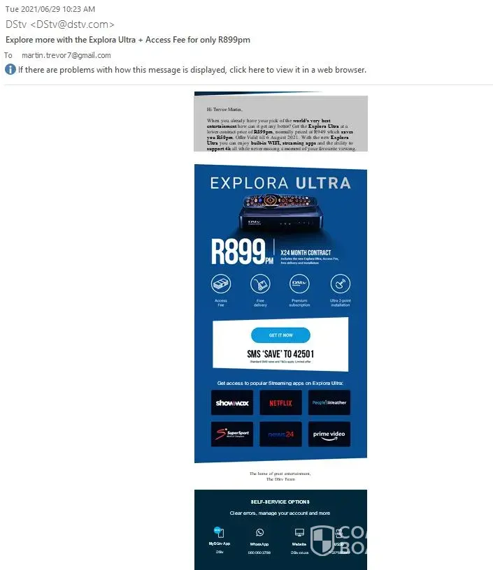 When you already have your pick of the world's very best entertainment how can it get any better? Get the Explora Ultra at a lower contract price of R899pm, normally priced at R949 which saves you R50pm. Offer Valid till 6 August 2021. ..."