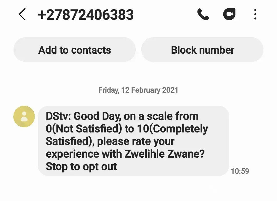 DStv sent December 26, 2020 at 2:59 PM