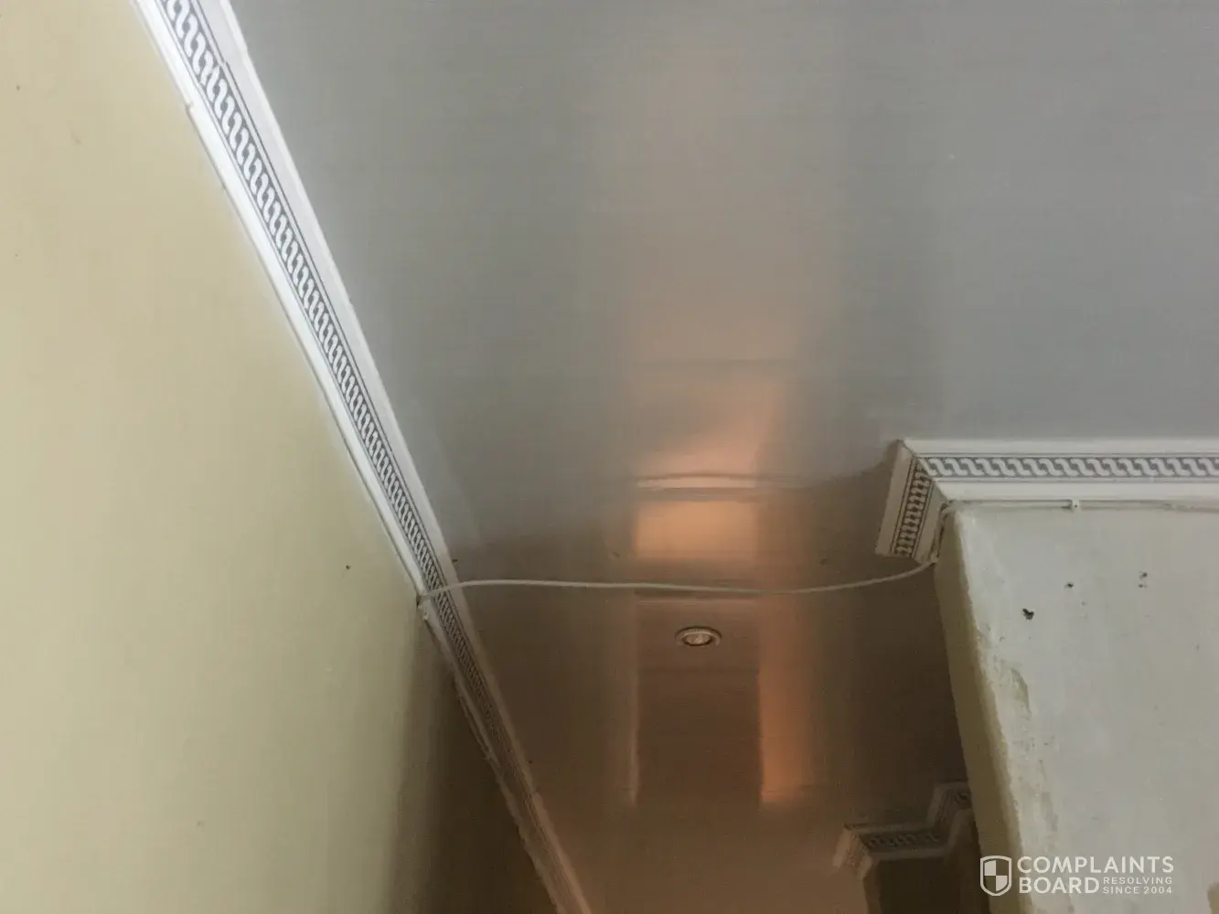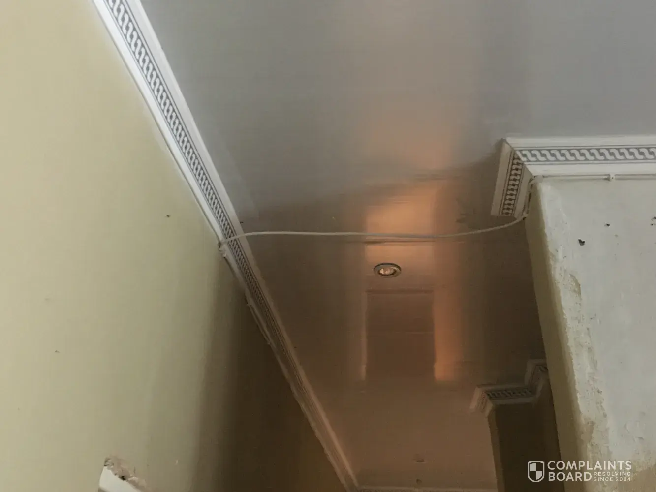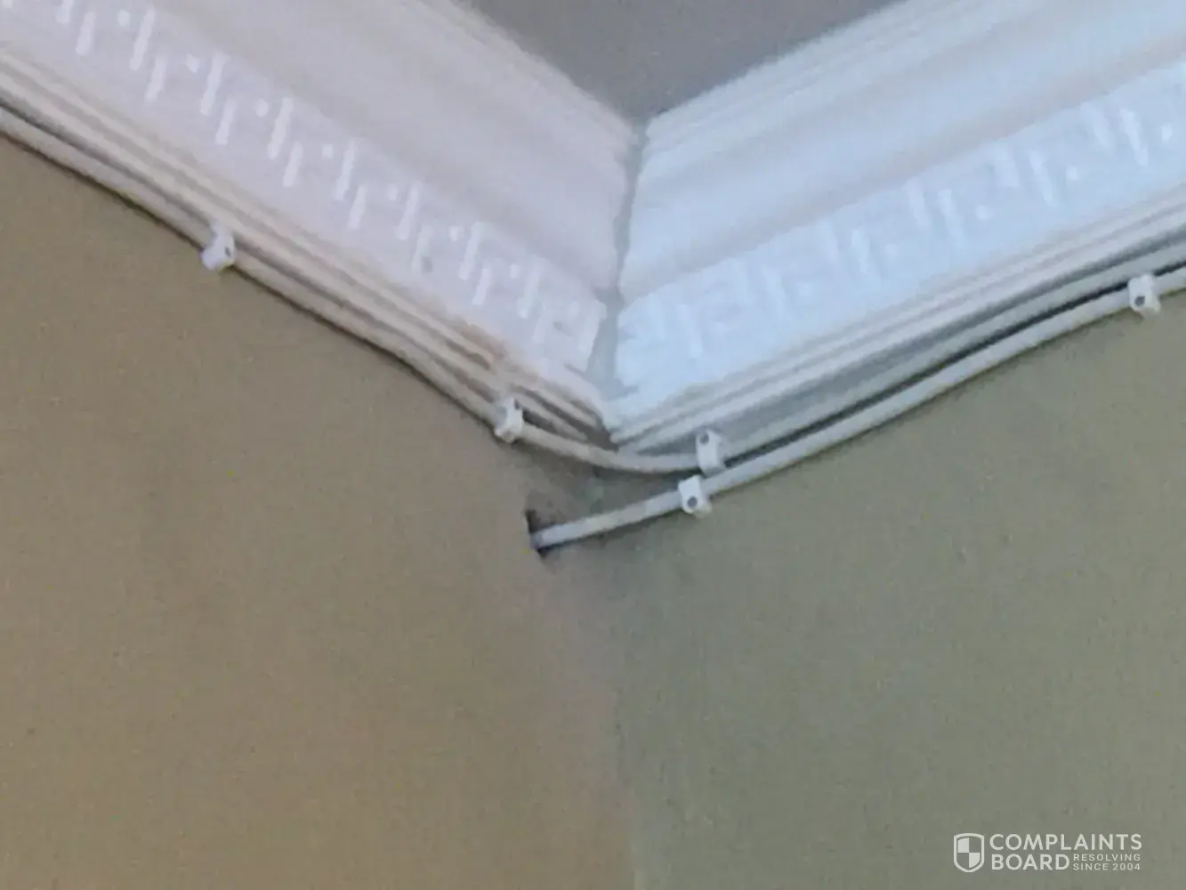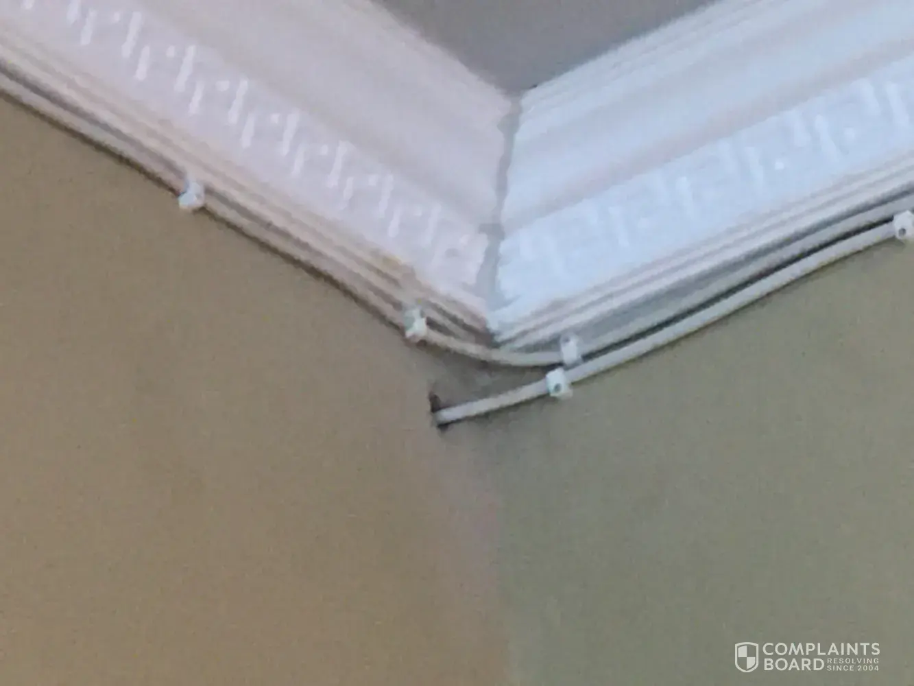 Accredited installer punched wall and mounted cables below cornice of a new cealing without concert from me the client. The excuse was he doesn't want to get dirty placing cables thru a newly installed cealing that has pigeons. This was extra view installation and he pulled originally installed cables from the cealing to mount them across the house passage and punched two walls for the extra view installation.