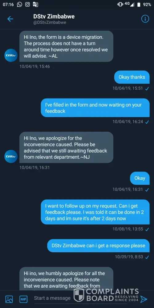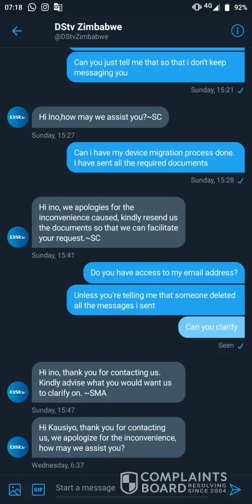 I have been taken back and forth by the customer representatives as they just don't want to resolve my device migration issue. It's been more than 2 months. My Twitter DMs and emails are being ignored. Different people may respond asking me to start the process from the top. I have sent all the required forms but they do not follow up. They make me look stupid. They have access to the messages but they just don't read and i think most of the responses im getting are automated because no one in they're right mind will ask what's the problem i need help with when they see a whole thread of messages that is explaining my request. They just don't care. I'll attach pictures of the messages here.