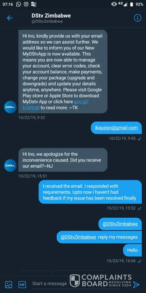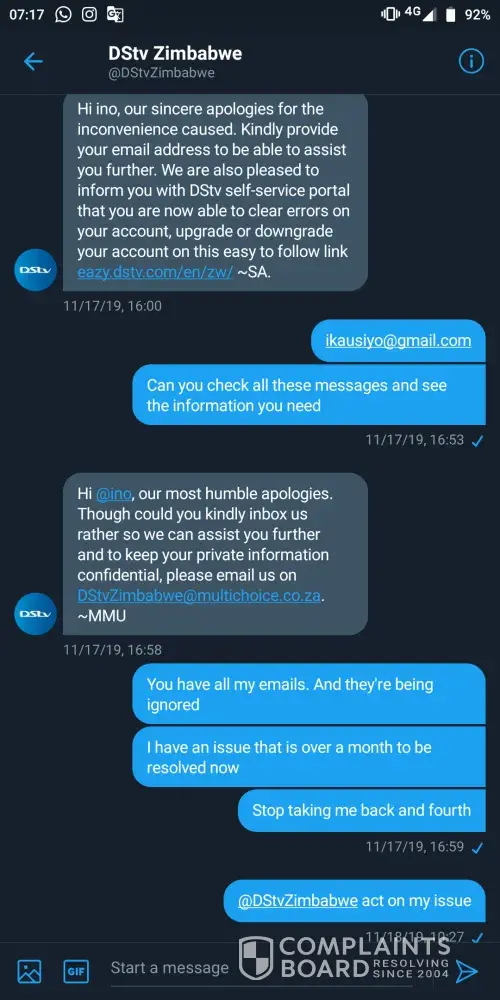 I want my matter resolved with urgency so I can be free of dstv..