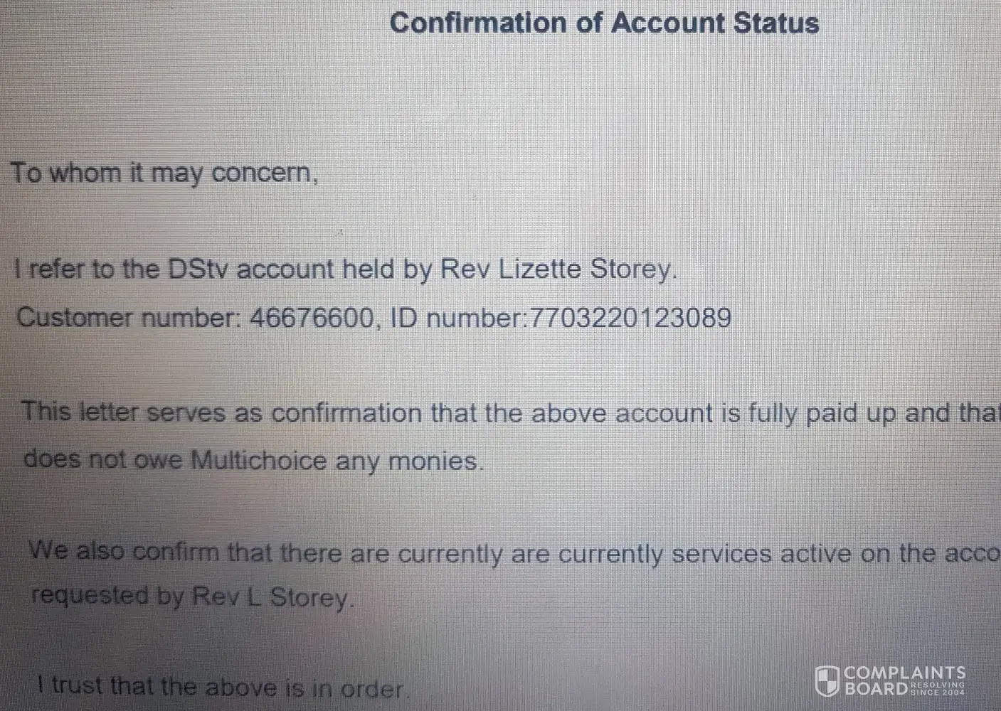 To date i have not recieved any communication what so ever from Dstv Multichoice office.