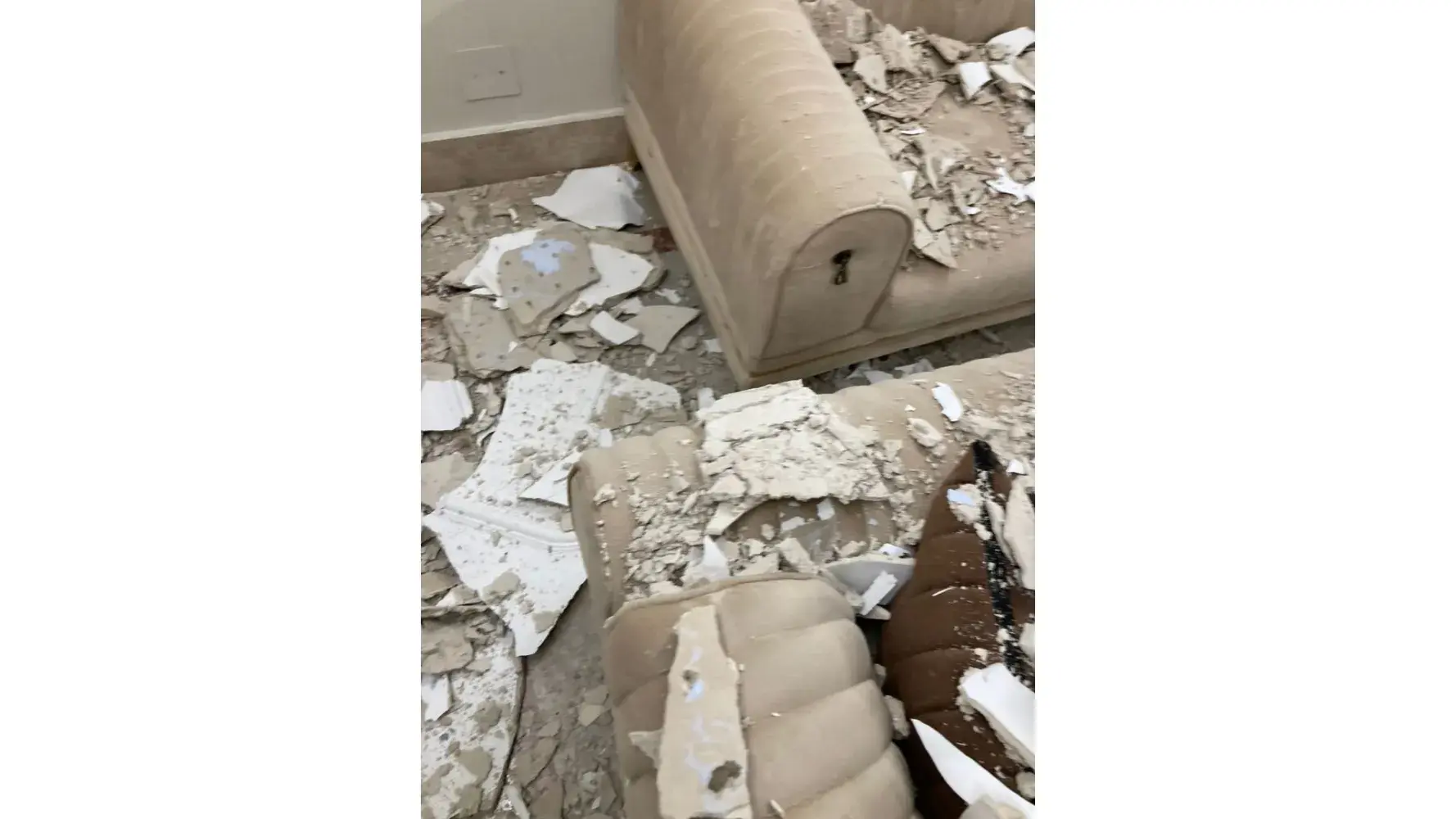 Desired outcome: He must compensate for my damage sofa ,ceiling ,broken tiles and laptop .Through authorized company rather his labor.