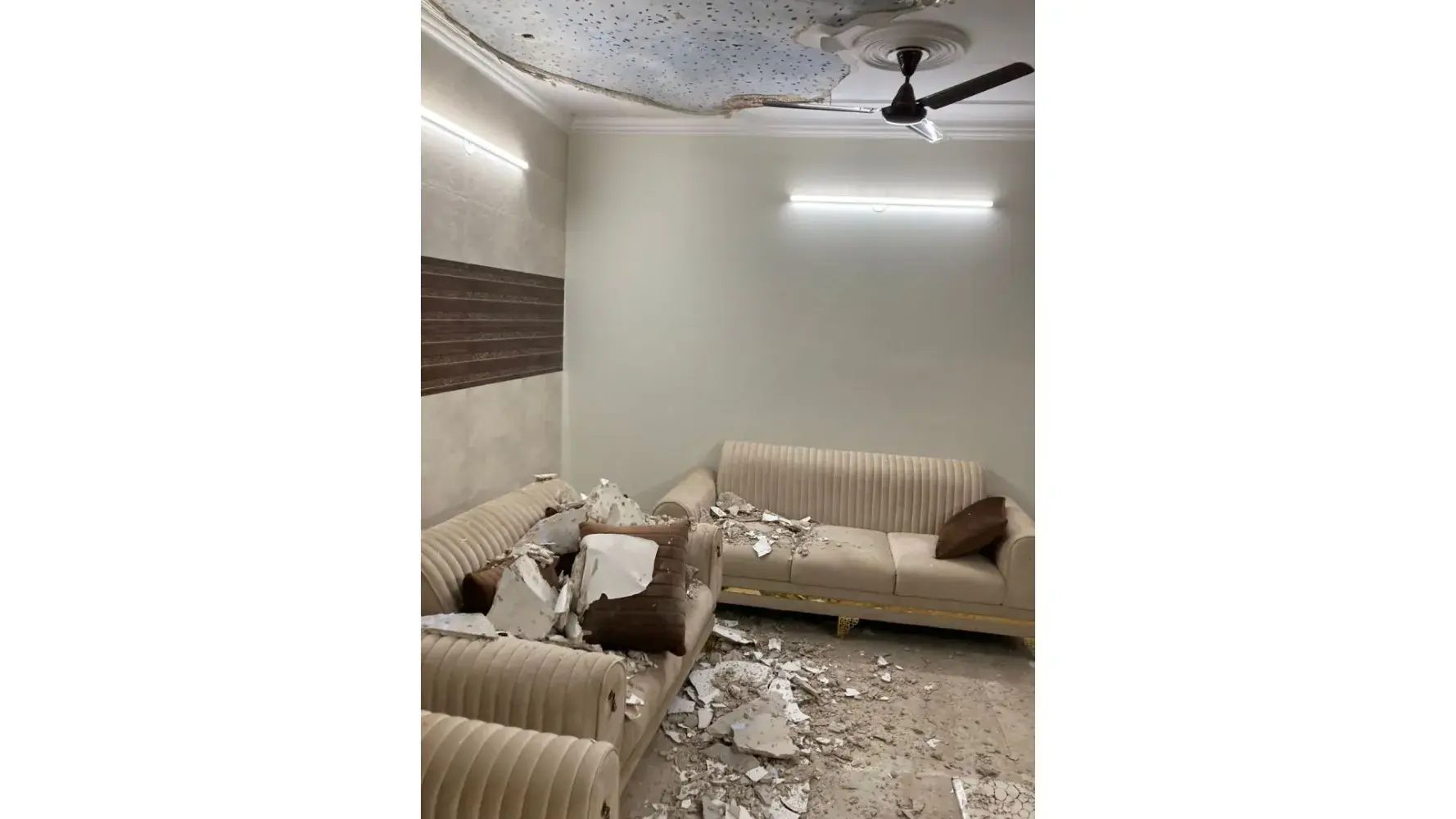 I am a resident of BE 179 First floor DDA FLAT Janakpuri, second floor i.e. BE 181 is owned by Mr. MP Sharma senior official of NHAI highly influenced and very rich person. I requested him to rectify the seepage issue on the flat due to his floor and do not start the renovation till my kid's exam but he ignored request and started lavish renovation from scratch. Seepage issue increased due to his renovation more and more but he did not address any of request today at 1800Hrs drawing room roof fallen while my son was seating in the drawing room, fortunately, he is safe. Even after my calls Mr. Sharma did not visit and send his labor to clean the room after some time his son came and threatened me if I complain to the police or MCD, I will stand responsible for more damage. Today his plumber RadheRAM quoted he advised him to change old water pipe and remove watertank from trace but sharma refused.