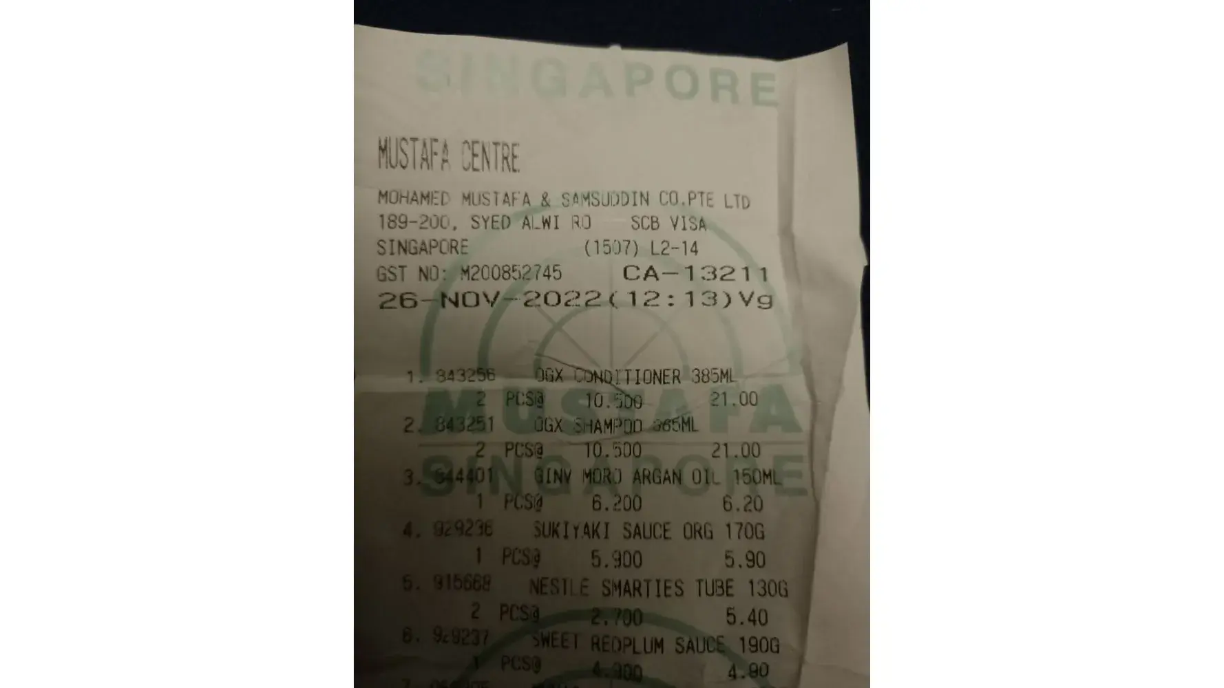 I , visited your shop on Thursday ( 10 Nov ‘22 ) @ 13.34 pm to buy 14 items at a total cost of $42.35 , receipt number (CA-65496) . Items include fruits , house hold items and chopper knife. After payment the cashier just put the items and knife in the plastic bag and give it to me.
