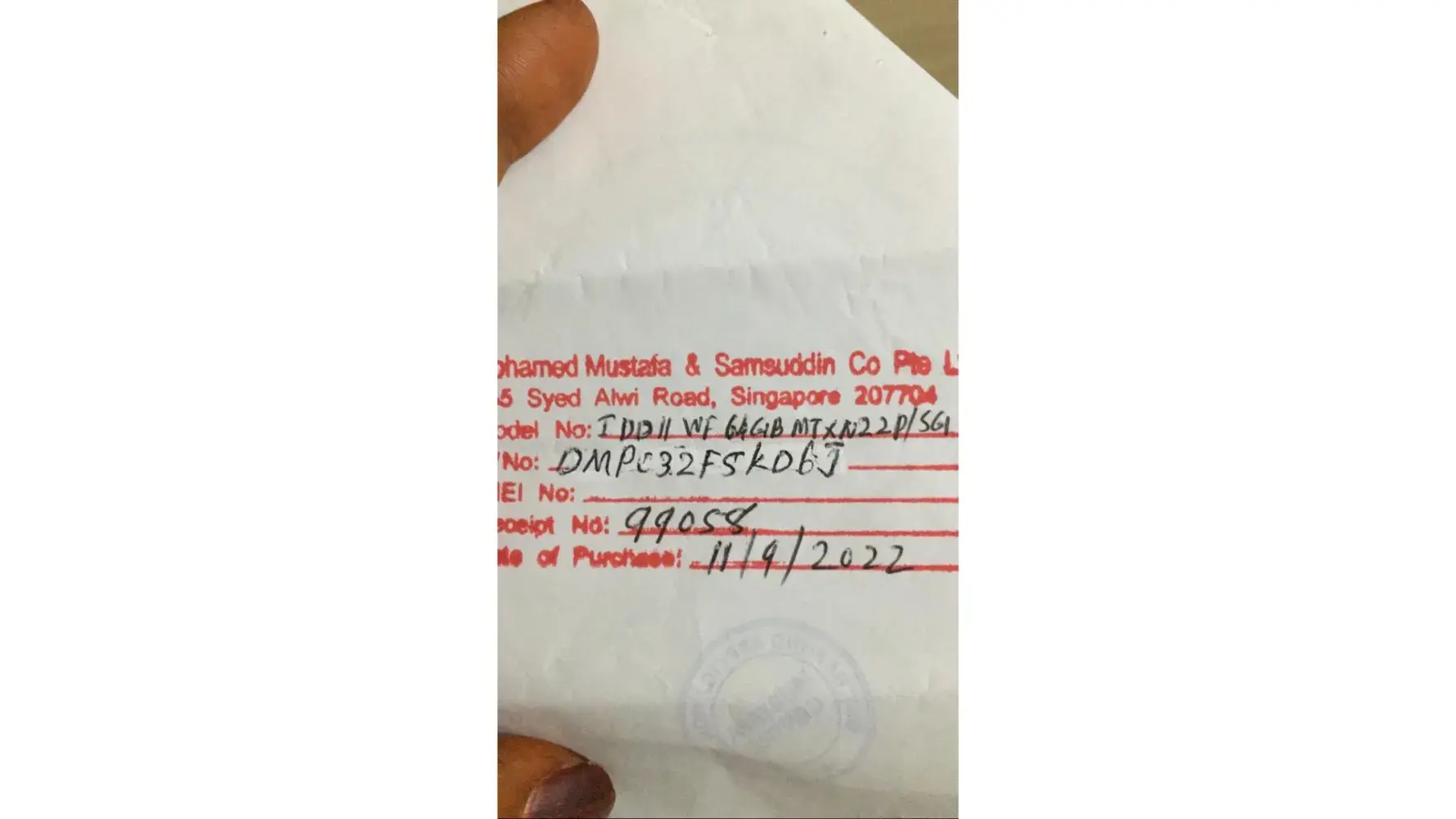 Ihave purchased one In car holder CA76 from Mustafa centre ,vide invoice no CA 99970 dtd 20.11.2023 for SGD 8.50