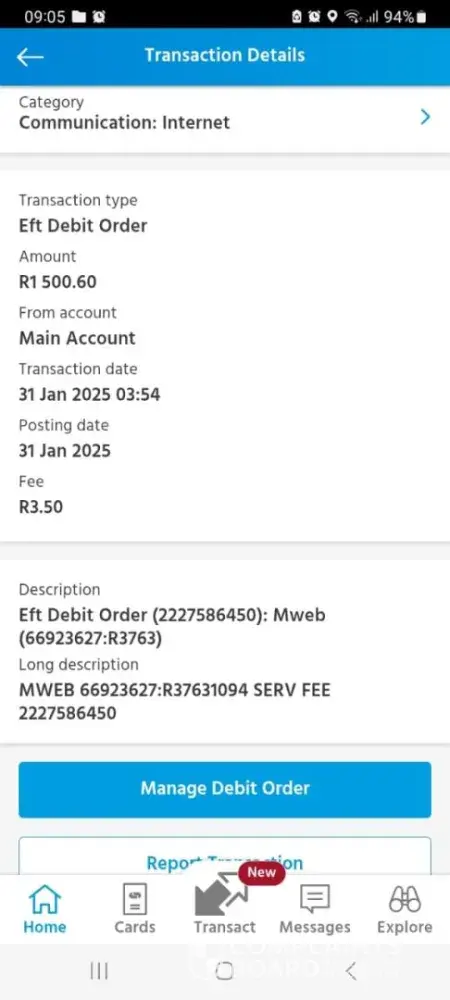 The debit order is keep on initiated every month with double the amount and keep on sending back and every time I receive an electronic message advising me of the unpaid debit order