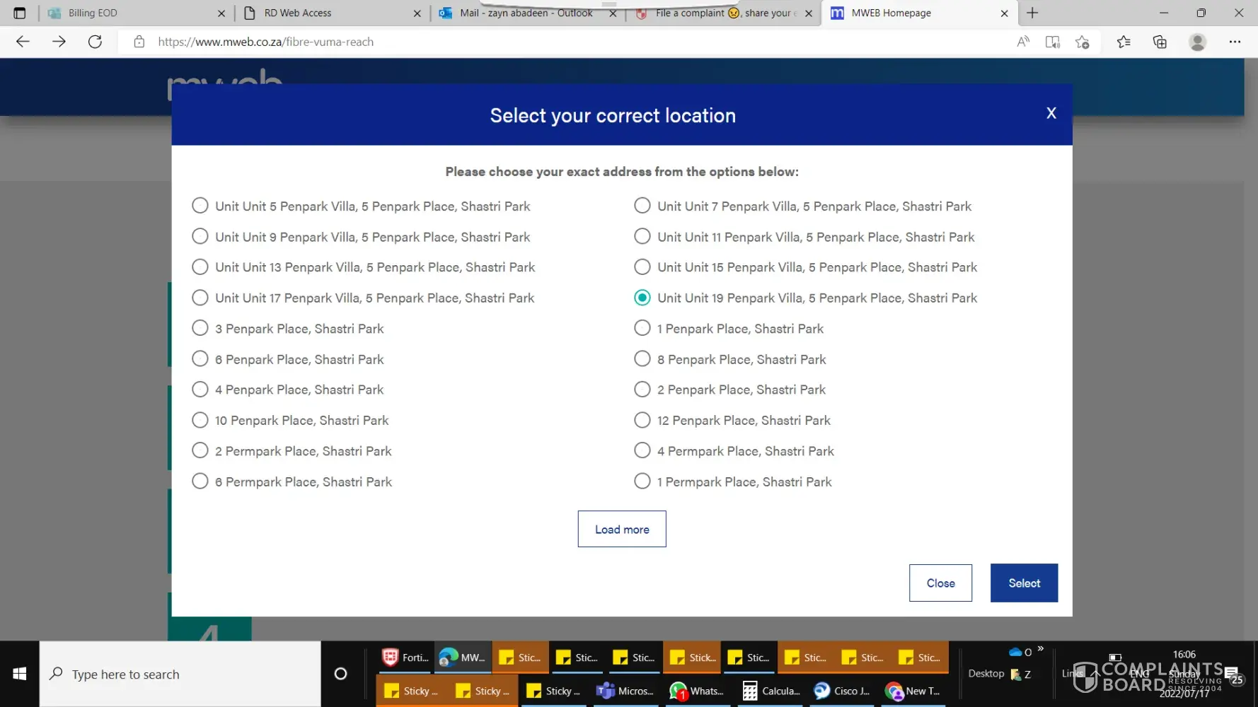 Mweb fibre- vumatel connection failures