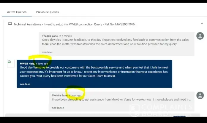 10/01/2022 - received email from vumatel and mweb my service was activated called and advised they no installation was done yet. since then i have made more than 60 calls to them and still no has rectified the issues. the managers do not even respond to msgs or call back they say they are escalating the issue but still nothing happens . i have even asked for a refund and a cancellation so that i can use another service provider. But yet again nothing happens. this is the worst customer service i have ever experienced. No sense of urgency and principles. [protected]
