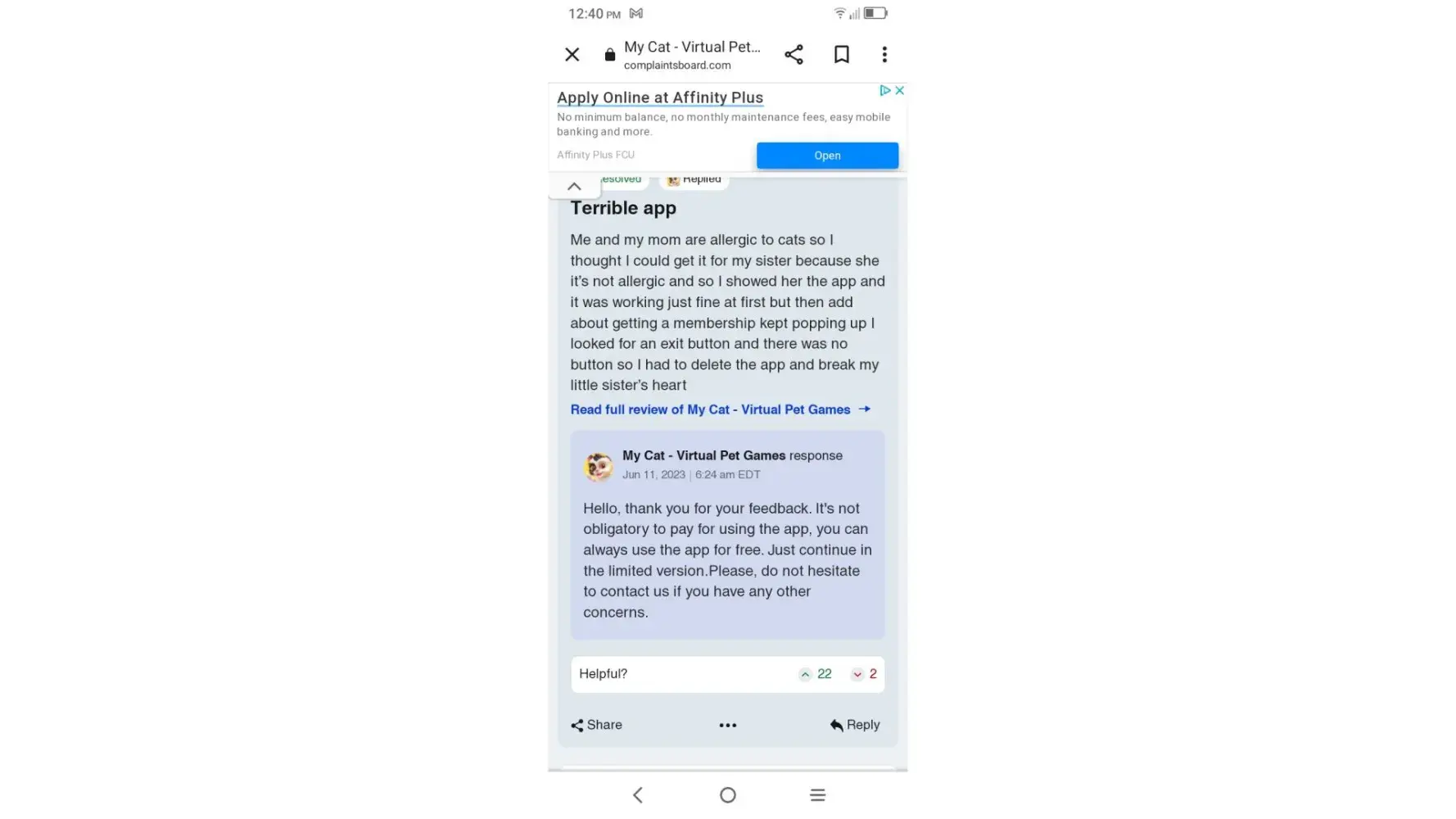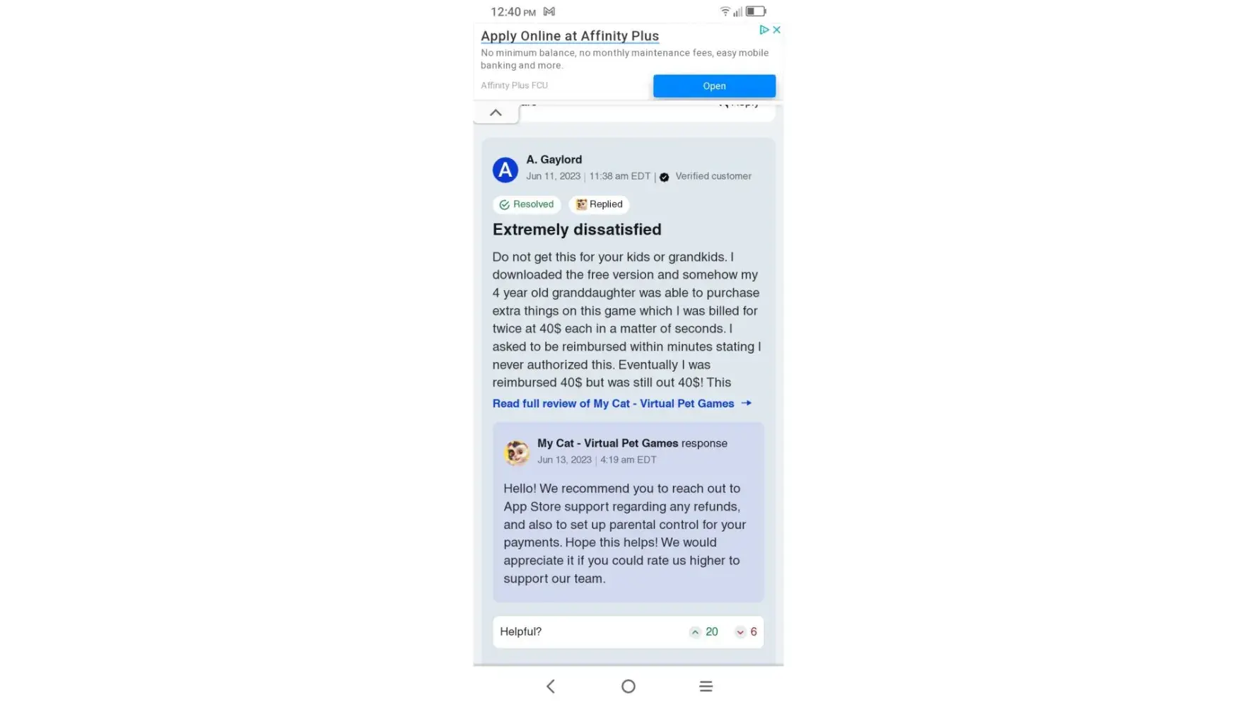 My Cat - Virtual Pet Games complaints: history and resolution overview