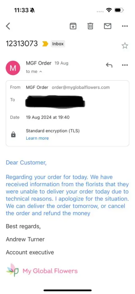 Disappointing Experience with My Global Flowers: Poor Customer Service and Delivery Issues