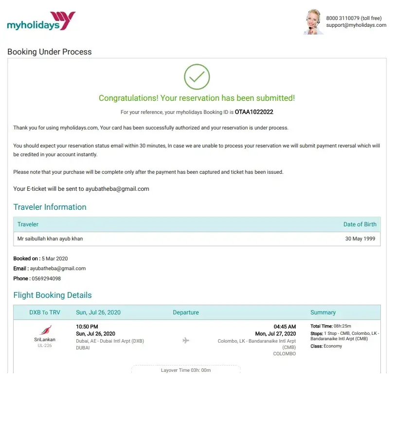 Myholidays is a total scam! I can't even give them a one-star rating. Don't believe any of the good reviews on here, they are all fake and written by Myholidays agents. I made the mistake of booking a ticket through their website and then received a call from an Indian scammer claiming that the airline had changed their rates and I needed to pay more money through an email link. Can you believe it? I knew right away that it was a scam and called the support numbers listed on Myholidays. But guess what? I hadn't even received a booking confirmation yet and they told me that the ticket had been cancelled and that I would get a refund.
