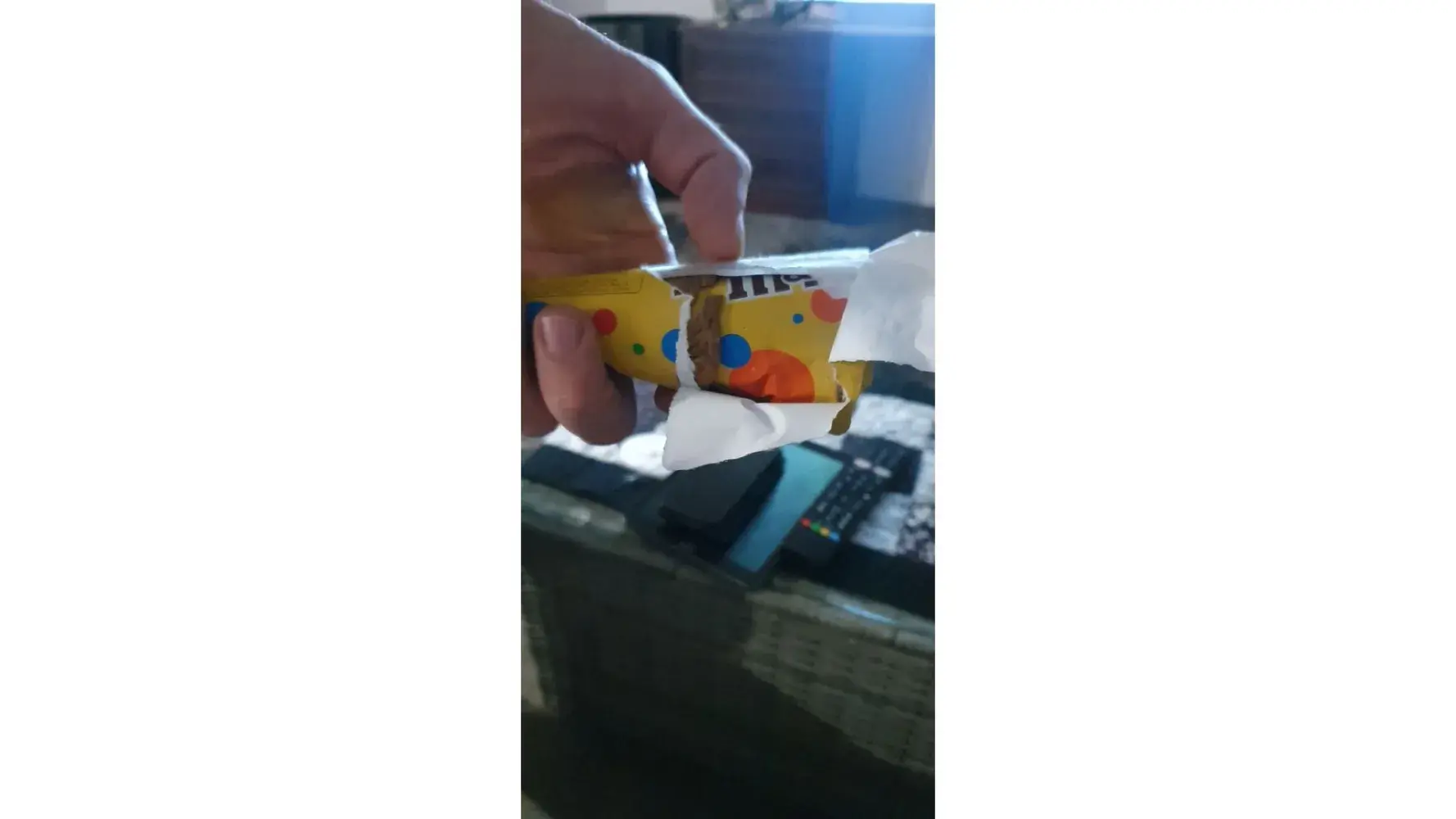 I purchased 18.4 ounce package and reached in the bag and did not see what I pulled out. I put them in my mouth and bit down on something that hurt my teeth. I pulled it out and it definitely was not an M & M. It hurt my teeth and looks weird. Now I am worried on what I am eating. Best before date 03/2023. 212DSCLV26. I bought them from Walmart on Cleveland Blvd. in Caldwell, Idaho. I could of broken my teeth or some other person eating in my house.