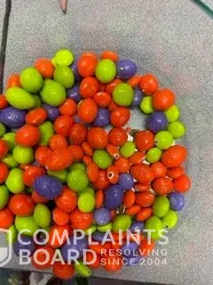 Out of all reported cases, 4 complaints (4%) have been marked as resolved, while 86 complaints (96%) remain unresolved. The most recent resolved complaint, wood bead in my candy, provides additional insight into how customer issues have been handled.