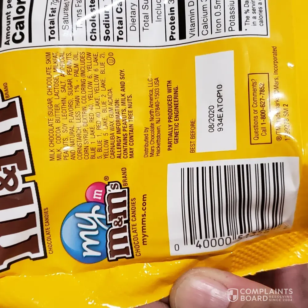 Yesterday I bought a pack (10.70 OZ) of Peanut M&M from Target (Temple, Texas) . The information on "Best Before " are 04/2020, 918CA4CW29, 03:00