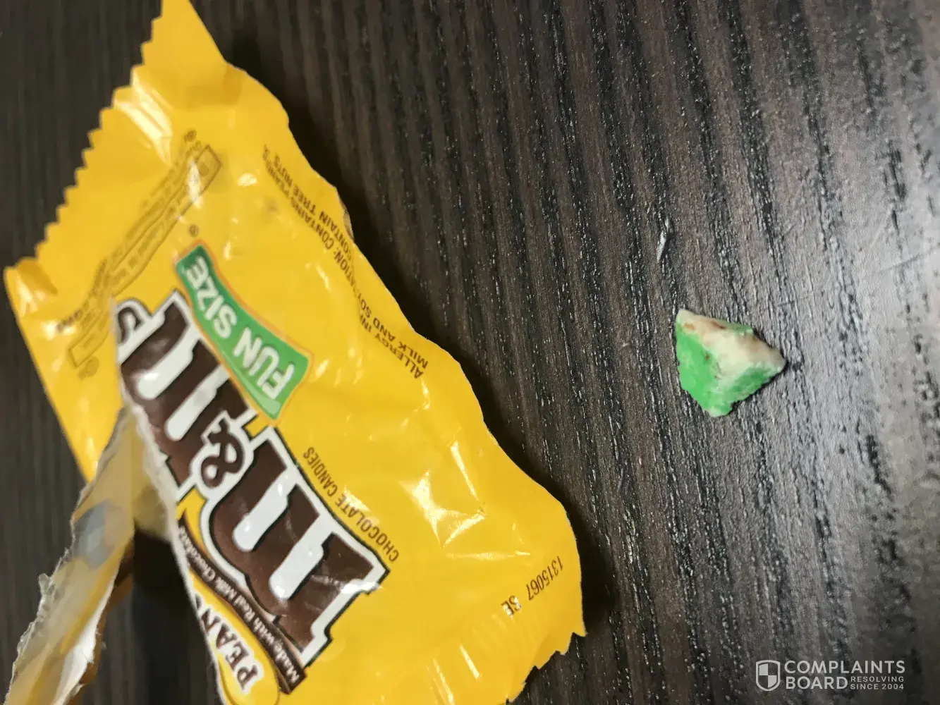 I love my plain M&M's i am never without them but last night I was eating them and I went to chew and bit on something hard it did not break tooth but it could have its larger than an M&M it's green like a green M&M hard like plastic or over hardened wax. I went through that and found a few more i have them still if you need pictures. These can break teeth and cause a child to choke please recall. Bought at walmart a few days ago. This happened 9/6/2019. Info on bag is best by: 05/2020. 925DA4cw23. 03:27