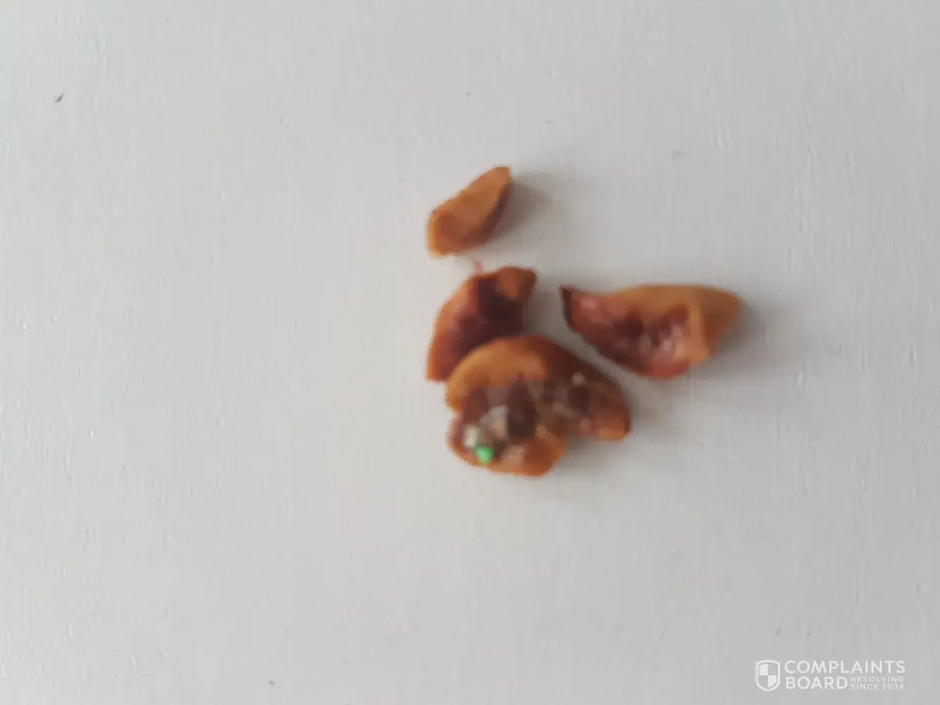 I bit Into one of the choclate peanuts and almost broke my tooth on the product in the middle it seemed slightly darker than a regular peanut I have taken images. Not only did i almost break my tooth but a small piece has got wedged inbetween my 2 back teeth and I am now in agony! This is a real nuisance and also very dangerous. I am usually a big fan of this product and am very dissapointed I hope this can be dealt with efficiently and to a satisfying standard.