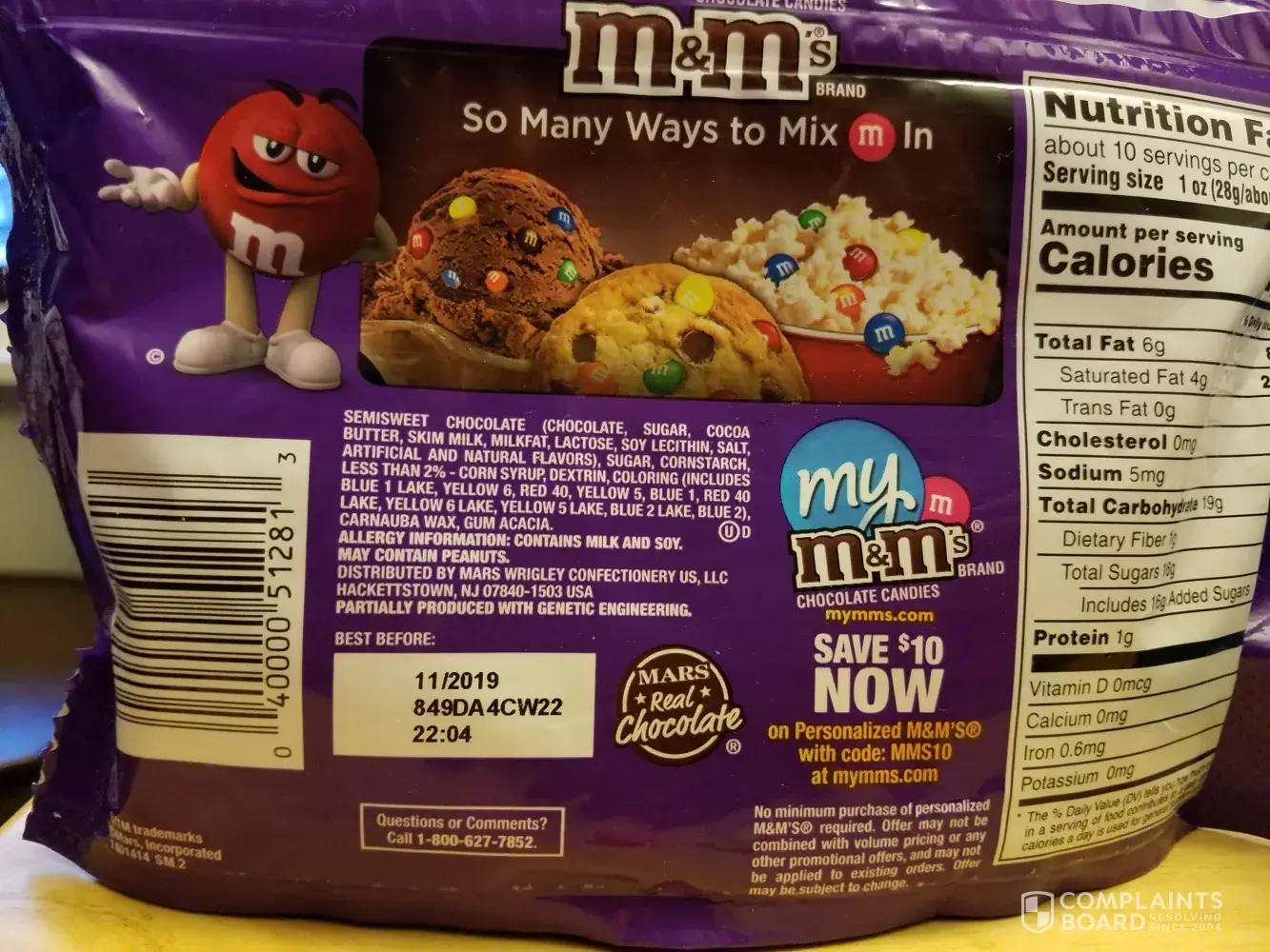 Why Am I having to pay just to file a complaint that is just ridiculous I purchased your product a party bag of peanut butter m&m, s they have a funky tasted like machine oil you can't eat these things this is the first time I have ever had this problem the batch #923BTCLV18 the date is 06/20/20 barcode [protected]