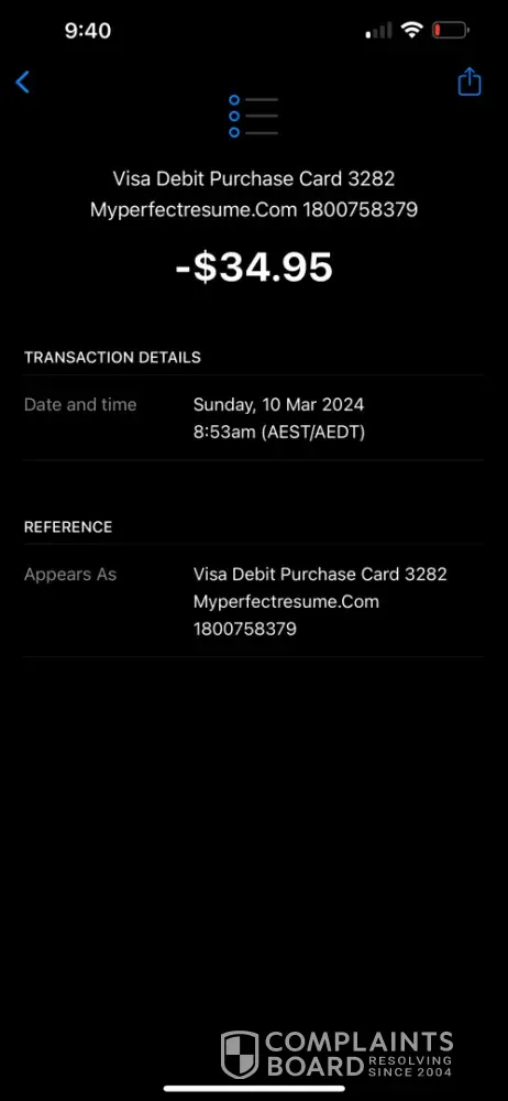 Read full complaintMy perfect resume.com