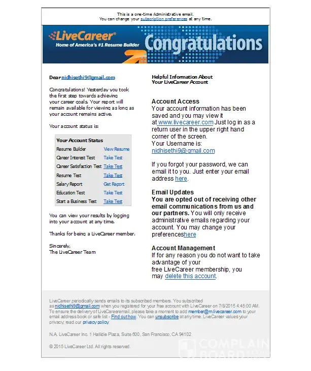 We are very committed to providing great customer service and again are very sorry that you had this experience. We take all feedback very seriously. It will be forwarded to our Marketing team. Please contact me directly if you have any further issues. You can email me at customerservice@livecareer.com or check your inbox and reply to a private message I have send you to see if I can address all your concerns