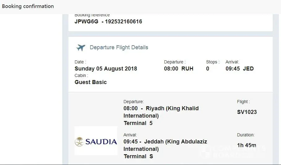 I bought a ticket for travelling from JED to RUH on 03/08/2018 21.00 Booking Ref: WUIO7P and return flight on 05/08/2018 RUH to JED 08.00AM Ref: JPWG6G and both ticket confirmed by Saudi airlines, we received the conformation email also.