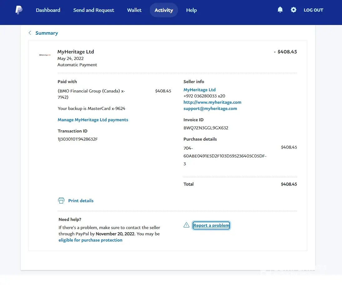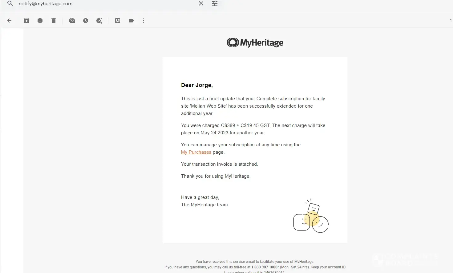 My Heritage auto subscription, Money taken from account.