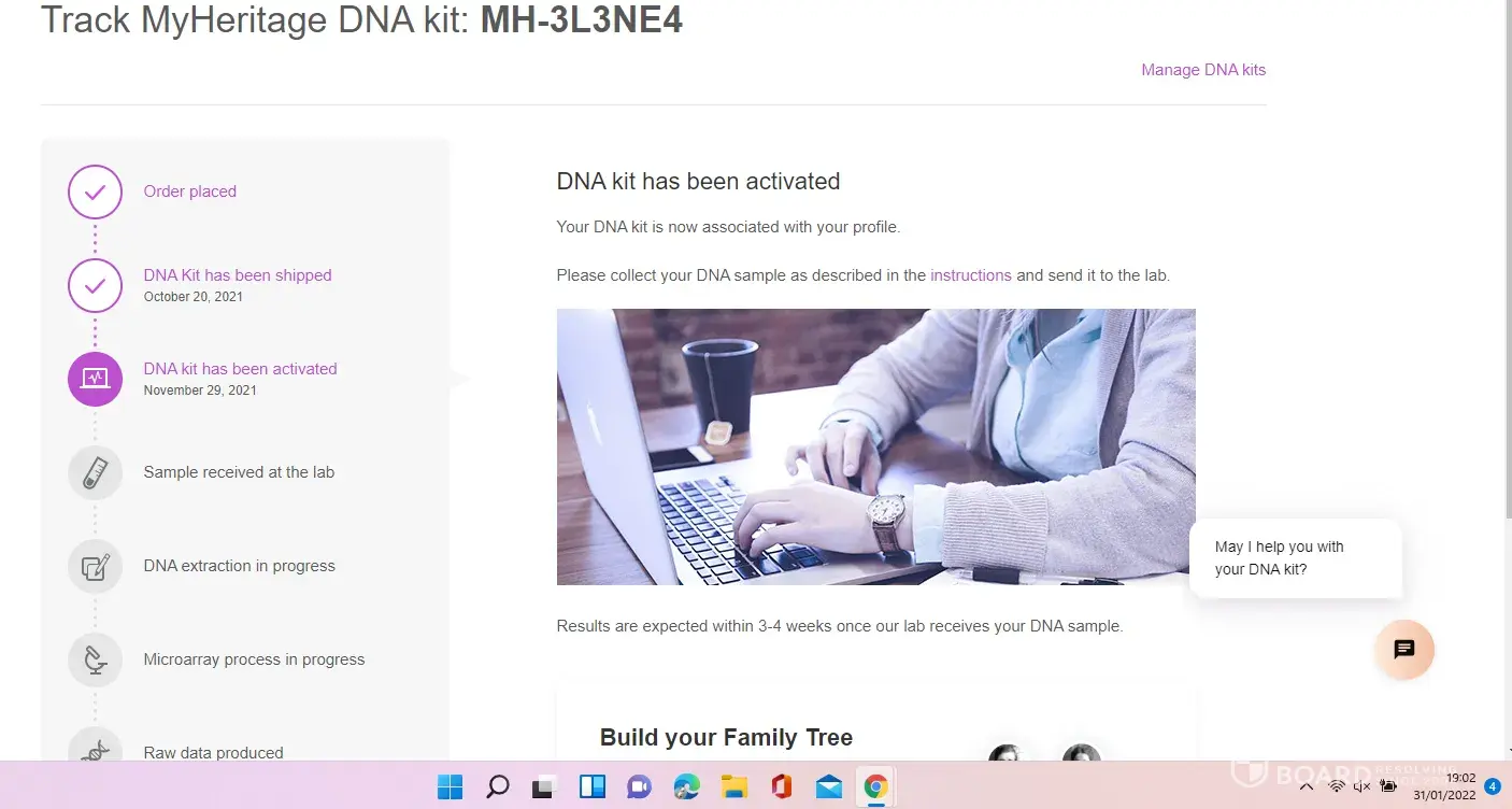 Desired outcome: I would like my DNA kit results. If not a full refund.