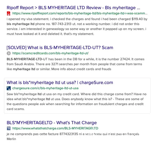BLS*MYHERITAGELTD, phone number [protected], in the amount 0f $89.00. Found this when I started doing my tax return for 2020. I did not use this service and would like a refund. Thank you, Rosemary [protected]