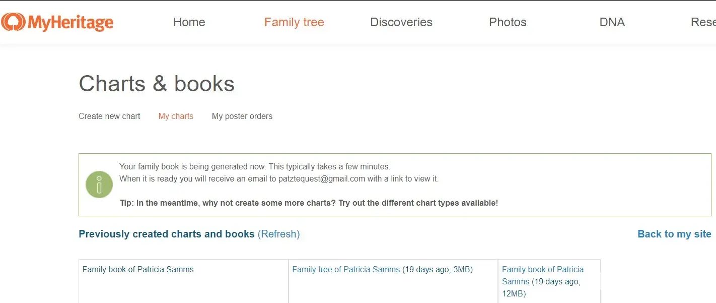 2- I recieved NO EMAIL after exporting GEDCOM for seeing results.0So NO GEDCOM FILE.