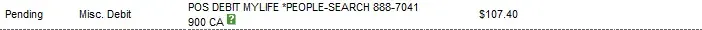 Next day I see a charge of $95.40 from MyLife.