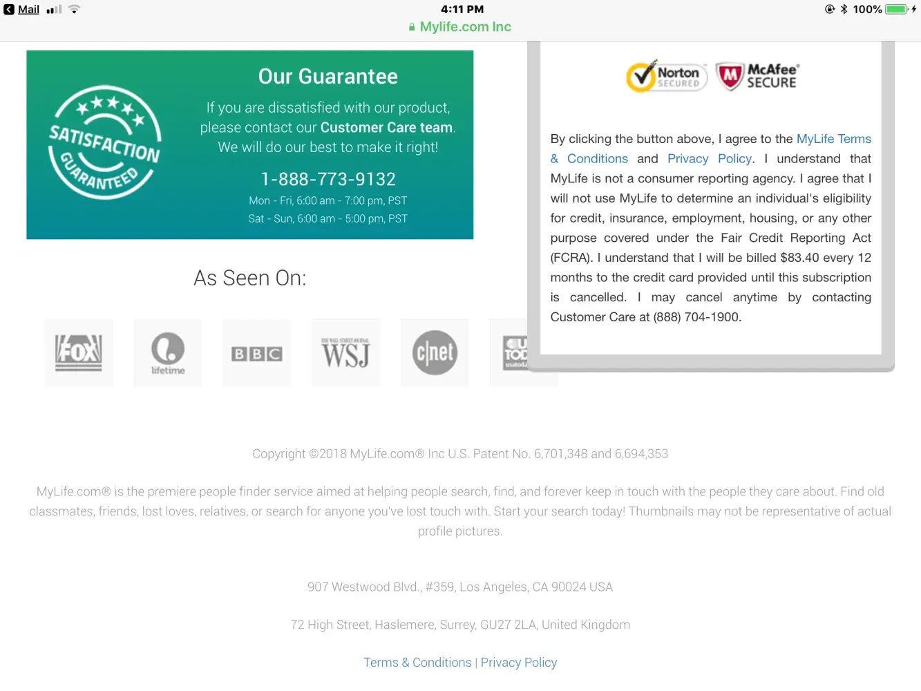 MyLife complaint