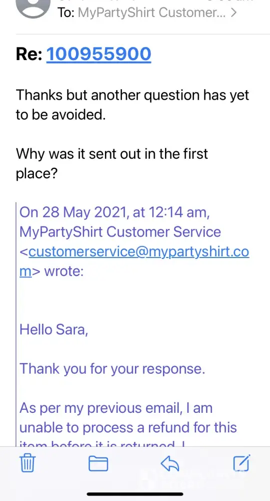• Despite a high level of trust, our investigation found issues with MyPartyShirt.com's service, including poor customer service, lack of accountability, and responsibility to resolve complaints. Customers may face long wait times for responses, receive generic or unhelpful answers or no response at all. Only 33% of 0 complaints were resolved.