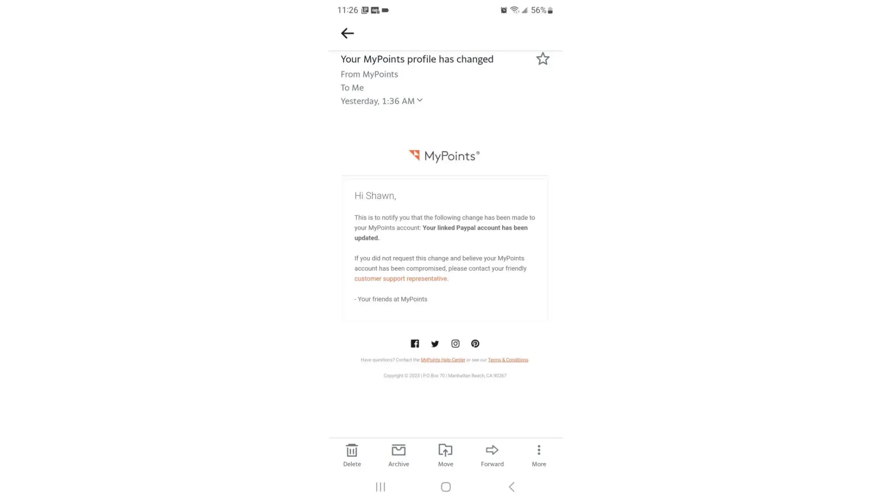 My Account was hacked on 1/31/23 and they used points for a $100 and $10 PayPal gift cards. I tried to reset my password but when I press the forgot password link it does not email me to reset. So i'm assuming whoever hacked my account possibly changed my email address!