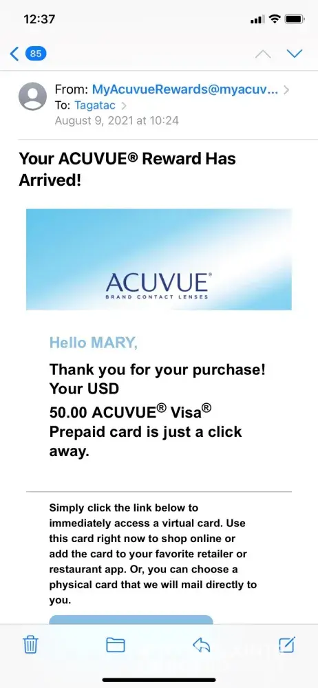 I ordered Acuvue contact lenses and had a $50.00 rebate. I received an email saying to access your card on August 9, 2021. I clicked on send me a card for my rebate. I did not receive the card until September 1, 2021. The care expired on August 2021. Is there a way I can still get my rebate. I should have contacted you but I just lost my mother and taking care of funeral service. I was hoping to use the rebate for food for the funeral.