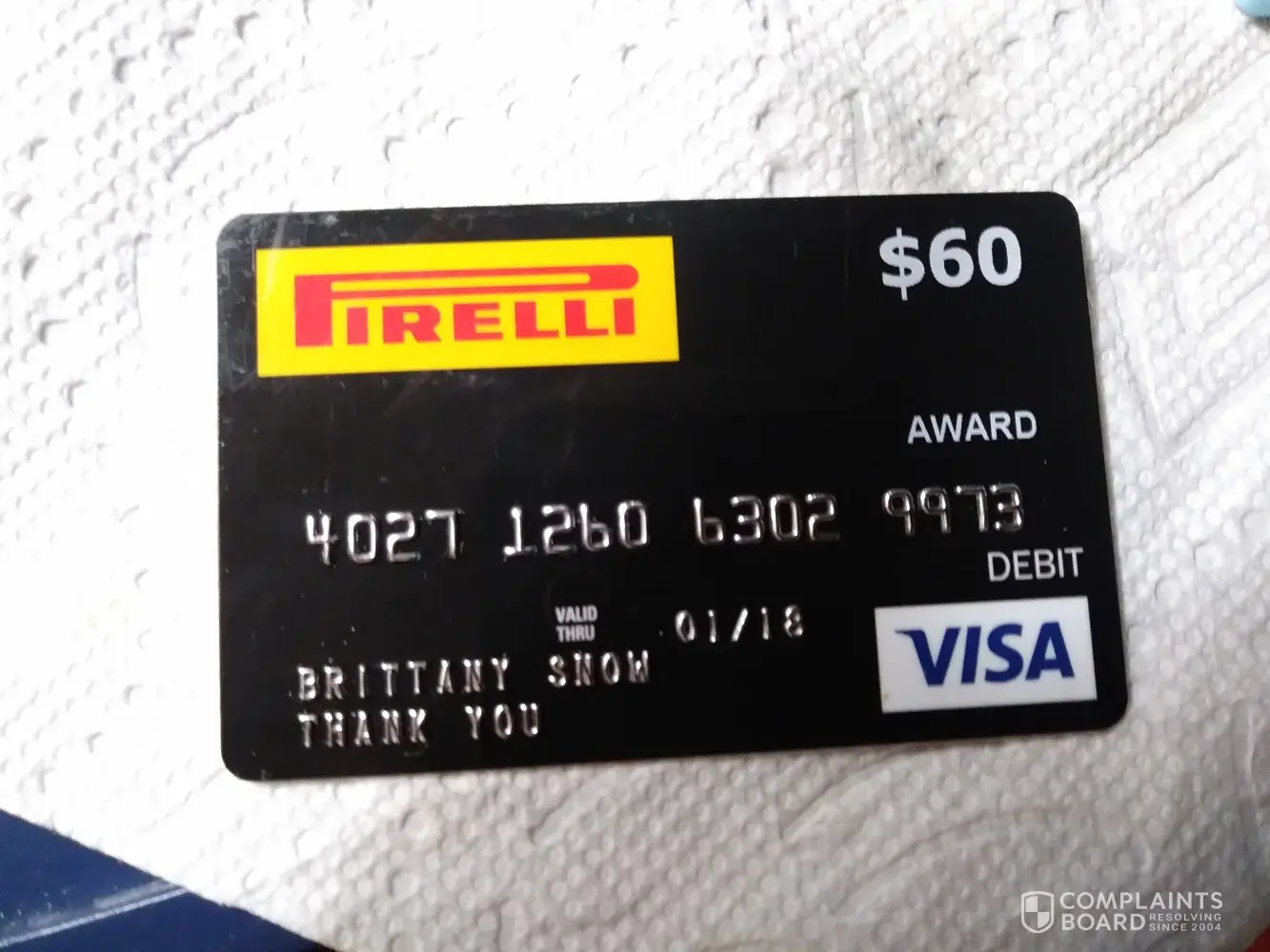 I bought a set of Mastercraft tires around March 2017, which were to include a $60 Visa prepaid card as a rebate through myprepaidcenter.com.