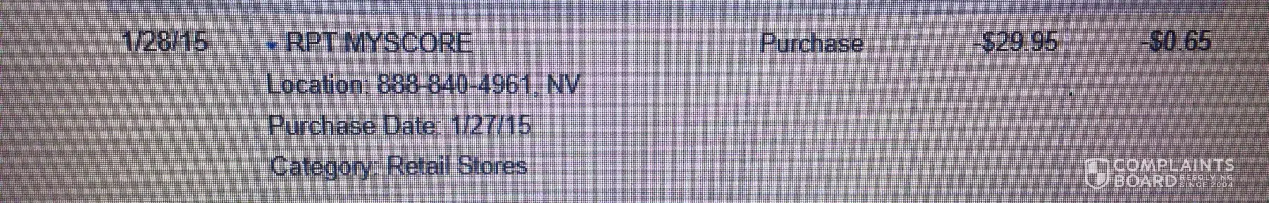 I never signed up for this "Rpt Myscore", however it appears twice on my latest bank statement - first time for $1.00, I presume to check to see if it would work, then for $24.95. I have no reason to sign up for them, I use a different credit reporting site which is free.
