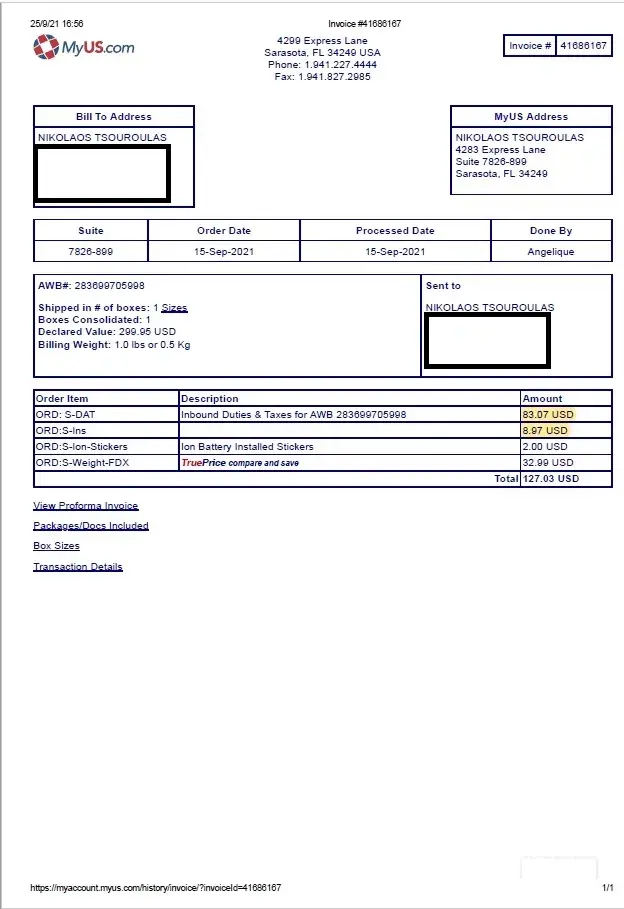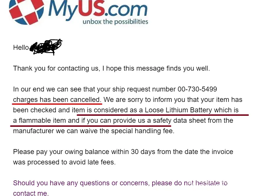 I have been paying for premium subscription for a while with MyUS.com On 1st March 2021, they mischaracterized an item and said it had a loose lithium battery just so that they could charge me an extra $29.99 fee. The item is an empty charger that needs to be connected to electricity prior to being used to charge a battery. The item does NOT ship with a...