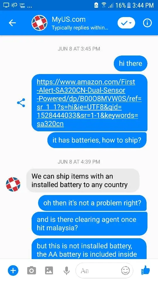 Here's the screenshot. Never mention about ion is radiation cannot export out. I even share product link for them to see. All they said is Alkaline battery no problem. BUT NEVER ion = radiation