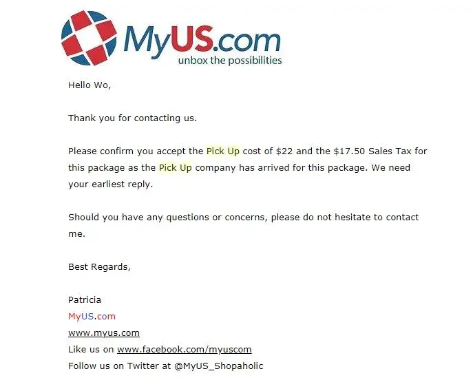 Oh yeah, i asked myus to refund me back the pick up fee since my forwarder doesn’t need to go and pick up. Guess what?